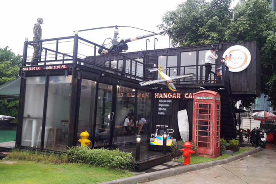 หากจะเรียกว่าคาเฟ่ในพิพิธภัณฑ์สงครามก็คงไม่ผิดนัก เพราะที่ Hangar Cafe แห่งนี้ ได้ยกเอาเครื่องบินและรถปลดประจำการที่ใช้ในสงครามมาเป็นพร๊อพตกแต่งด้านนอกร้านให้ดูดุดัน แต่ยังเข้ากันกับบรรยากาศธรรมชาติและป่าขนาดเล็กที่อยู่ใกล้กับคาเฟ่ ร้านเปิดตั้งแต่ 10:00-21:00 น. ด้านนอกของคาเฟ่มีมุมให้นั่งหลายมุม มีพิพิธภัณฑ์เครื่องบินให้ได้เข้าไปเยี่ยมชมกันแบบเอ็กซ์คลูซีฟ แต่ไฮไลท์หลักคือบริเวณน้ำตกจำลองยอดฮิต อาหารและเครื่องดื่มของที่นี่ถูกสร้างสรรค์มาอย่างดีเพื่อให้แน่ใจว่าลูกค้าทุกคนจะติดใจในรสชาดและกลับมาอีกครั้งพร้อมกับแก้งค์เพื่อนๆที่มากกว่าเดิม ช่วงเทศกาลสำคัญๆ ทางร้านเอาใจด้วยการขยายเวลาเปิดไปจนถึงเที่ยงคืนเลยทีเดียว เพื่อให้ลูกค้าได้นั่งดื่มด่ำบรรยากาศธรรมชาติและแสงไฟที่ถูกประดับประดารอบร้านอย่างเต็มที่ เอาเป็นว่าใครอยากได้ตีมคาเฟ่เก๋ๆ มาที่นี่ไม่ผิดหวังแน่นอน