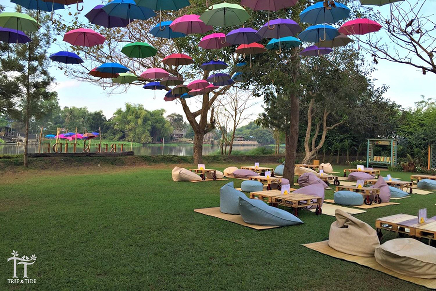 คาเฟ่ใต้ร่ม(และ)ไม้ใหญ่ ติดริมแม่น้ำท่าจีน ใกล้ชิดธรรมชาติกว่านี้คงไม่มีอีกแล้ว กับ Tree&Tide Riverside Cafe คาเฟ่ที่นั่งกลางแจ้งสุดคูลใต้ร่มไม้และร่มที่น้ำมาตกแต่งให้ดูเก๋ไก๋มีเอกลักษณ์ของตัวเอง ใครที่สนใจจะมาพักผ่อนแบบชิลล์ๆ กับครอบครัวและเพื่อนฝูงที่นี่สามารถโทรมาสำรองที่นั่งล่วงหน้าได้ เพราะในช่วงเทศกาลที่นั่งอาจเต็ม แถมยังติดตลาดน้ำวัดลำพญาอีกต่างหาก ด้านอาหารและเครื่องดื่มของทางร้านก็มีให้เลือกอย่างหลากหลาย แถมขึ้นชื่อไม่แพ้กัน ที่แนะนำให้ไปโดนก็คือ เมี่ยงกลีบบัว คล้ายเมี่ยงคำแต่ใช้กลีบบัวแทน แป้งโรตีกรอบๆ เสิร์ฟพร้อมแกงเขียวหวานเข้มข้น หรือจะเป็นขนมหวานก็อร่อยสุดๆ ส่วนใครที่กำลังมองหาสถานที่สำหรับจัดงานเลี้ยง-งานแต่งงาน แบบส่วนตัว ขอแนะนำเลยว่า tree&tide Riverside Cafe สามารถตอบโจทย์ของท่านได้เป็นอย่างดี ร้านเปิดให้บริการตั้งแต่ 09:00-17:00 น.