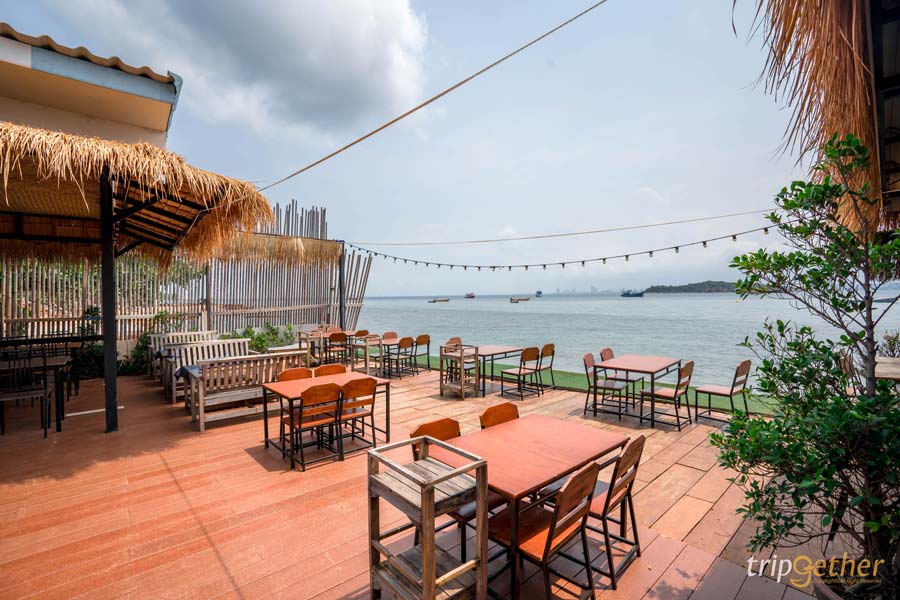 ไปกันต่อที่ มาหารัก คาเฟ่ ที่นี่เป็นทั้งจุดเช็คอินสุดฮิปโทนขาวน้ำตาล และเป็น ร้านอาหารเกาะล้าน ที่เสิร์ฟซีฟู้ดรสแซ่บ ตัวร้านมี 2 ชั้น พร้อมกระจกบานใหญ่ที่เปิดรับวิวทะเลแบบเต็มตา ไม่ว่าจะนั่งมุมไหนก็ได้รูปสวยๆ กลับไปอวดเพื่อนแน่นอน ในส่วนของเมนูที่แนะนำเลยคือ ปูผัดผงกะหรี่ ให้เนื้อปูมาแบบเน้นๆ หอมเครื่องเทศ น้ำพริกกุ้งสด รสชาติจัดจ้านถึงใจตามแบบฉบับคนชลบุรี กินคู่กับผักสดๆ คือฟินมาก นอกจากนี้ยังมี ต้มยำปลาทู รสเปรี้ยวเผ็ดสะใจที่ช่วยตัดเลี่ยนได้ดี ใครที่อยากได้ทั้งรูปสวยๆ และอิ่มอร่อยกับมื้อหลักในที่เดียว ที่นี่ตอบโจทย์มาก ยิ่งช่วงหัวค่ำที่มีดนตรีสดเบาๆ บรรยากาศดีมาก