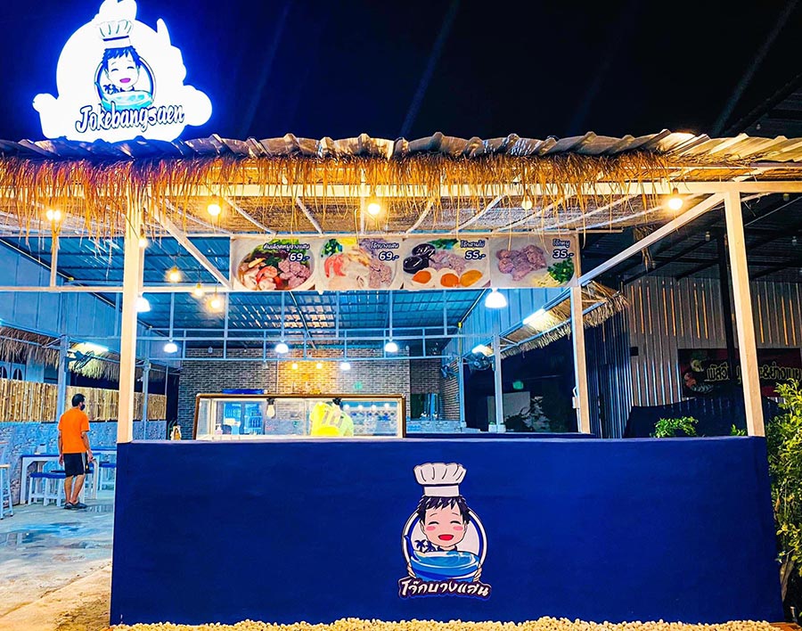ปิดท้ายกันที่ร้านอาหารเช้าแบบออเดย์ โจ๊กบางแสน ที่เปิดตั้งแต่หกโมงเช้าถึงตีสาม บอกเลยว่าเด็ดจริงเพราะมีเมนูให้เลือกมากมายทั้งโจ๊ก ต้มเลือดหมู ข้าวต้ม ข้าวมันไก่ และมาม่าสำหรับเมนูแนะนำของร้านก็คือ ต้มเลือดหมูบางแสนและโจ๊กบางแสน ที่มีเนื้อสัตว์แบบจัดเต็มทั้งหมูเด้ง หมึก กุ้ง ปู ปลา หรือจะสั่งเป็นโจ๊กสามไข่ ที่ใส่ทั้งไข่ลวก ไข่เยี่ยวม้า และไข่เค็มมาให้ถ้วยเดียว นอกจากนั้นยังมีเมนูข้าวมันไก่ และเมนูมาม่าให้สั่งกัน ไม่เท่านั้นตัวร้านยังตกแต่งด้วยโทนสีน้ำเงินอย่างสวยงามและยังเปิดโล่งนั่งสบายอีกด้วย