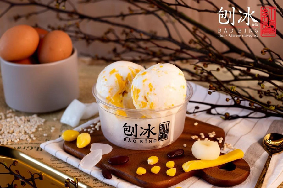 ขอขอบคุณรูปภาพจาก: เป้าปิง 刨冰- Bàobīng เต้าทึง หมี่หวาน ไอติมไข่แข็ง น้ำแข็งไส