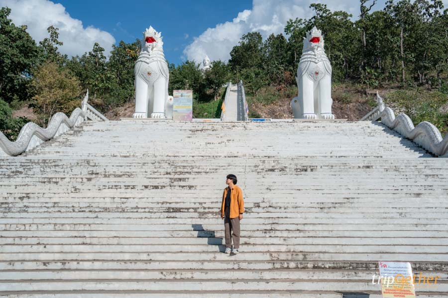 ขับรถออกจากตัวอำเภอปายไปประมาณ 2 กิโลเมตร ก็จะพบกับ วัดสวยแม่ฮ่องสอน พิกัดถดัมา นั่นก็คือ วัดพระธาตุแม่เย็น เป็นวัดดังแห่งอำเภอปายที่อยู่บนยอดเขา ท่ามกลางธรรมชาติ โดดเด่นด้วยพระพุทธรูปสีขาวองค์โต หรือ พระพุทธโลกุตระมหามุนี ซึ่งเราจะต้องฟันฝ่าบันไดถึง 300 ขั้นเพื่อขึ้นไปกราบไหว้ นอกจากนี้ด้านบนยังมีวิวสวยๆ ของตัวเมืองปายและแม่น้ำปายให้ได้ชมกันด้วยนะ รวมถึงภายในวัดยังมีสถาปัตยกรรมสำคัญๆ อย่างเช่น พระอุโบสถ ซึ่งมีลักษณะผสมผสานศิลปะล้านนาและพม่าที่สวยงาม มีเจดีย์ทรงระฆังแบบพม่าซึ่งตั้งอยู่ด้านหลังอุโบสถ และประดิษฐาน พระนอน ให้เราได้กราบสักการะขอพร