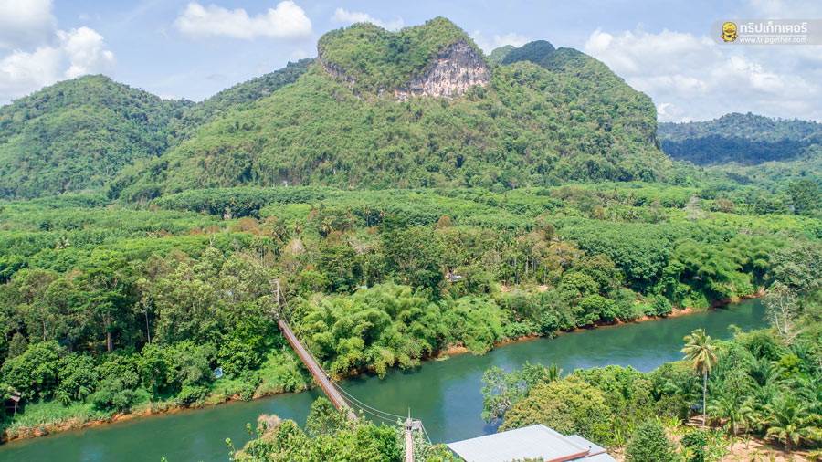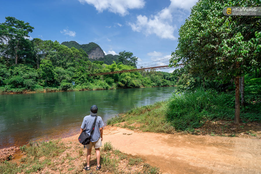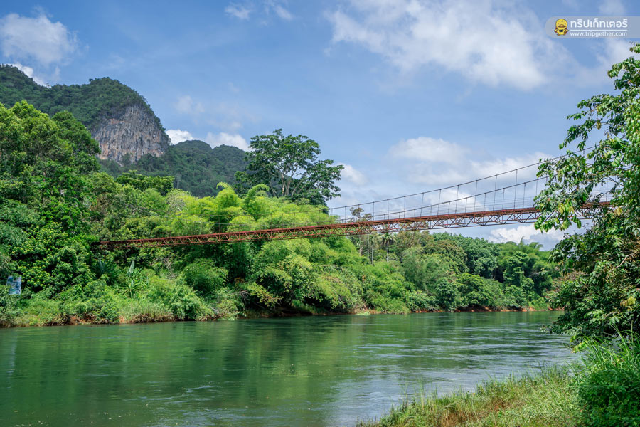 ปิดท้ายลงใต้ อีกหนึ่งแหล่งท่องเที่ยวในจังหวัดสุราษที่ค่อนข้างมีชื่อเสียง ใครผ่านไปผ่านมาก็ต้องแวะยลโฉมกับสะพานแห่งนี้แทบทุกคน ตัวสะพานขึงด้วยลวดสลิงขนาดใหญ่ ยึดกับเสาคอนกรีต จึงรับรองได้ถึงความปลอดภัย สะพานแห่งนี้มีความยาว 120 เมตร ทอดยาวผ่านลำน้ำคลองพระแสง นอกจากสะพานแล้ว ยังมีจุดเด่นที่วิวสวย สามารถชมพระอาทิตย์ได้ทั้งตอนเช้าและตอนเย็น แถมยังมีวิวภูเขารูปหัวใจแปลกตา เป็นสักขีพยานสำหรับใครที่จะพามาบอกรักกันที่นี่ด้วย