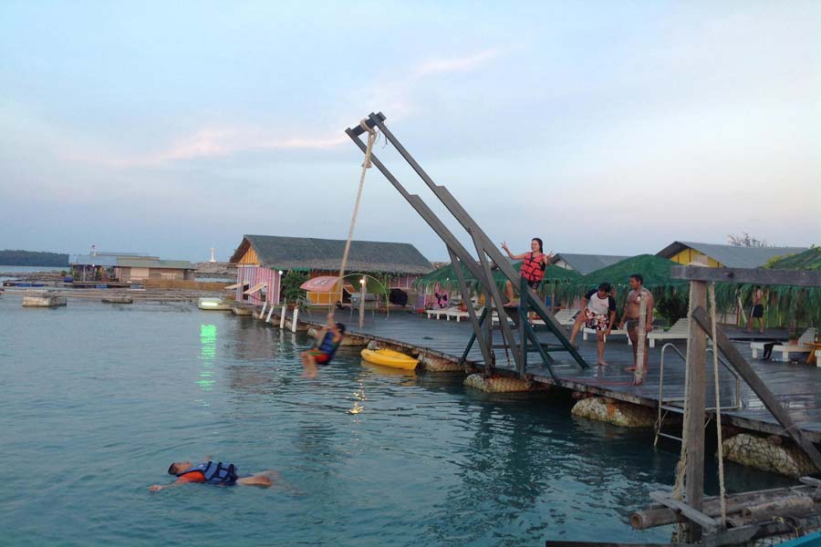 “กระชังแพชาวบ้านโฮมสเตย์” ที่พักสไตล์บ้านๆ ที่ตั้งอยู่บนแพลอยน้ำ ซึ่งจะให้คุณมองเห็นทะเลและกระชังปลาแบบ 360 องศา ตัวที่พักก็ตกแต่งด้วยสีสดใสแสบสัน โดยแบ่งเป็นบ้านพักเป็นหลังๆ ให้คุณได้พักผ่อนแบบส่วนตัวพร้อมสิ่งอำนวยความสะดวกครบครัน นอกจากนี้คุณยังสามารถเล่นน้ำได้แบบเต็มที่ ที่เปิดประตูมาก็สามารถกระโดดลงน้ำได้ทันทีเลย ใครที่ชอบความชิลล์ๆ ต้องไม่พลาดเด็ดขาด