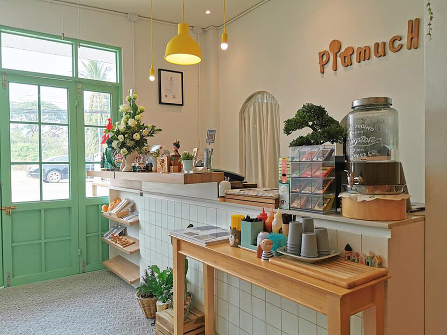PlumucH ปลัมมัช & นมสดขนมปัง คาเฟ่ตาก ที่ตั้งอยู่ในเมืองไม่ไกลจากโรงพยาบาลสมเด็จพระเจ้าตากสินมหาราช มีจุดสังเกตง่ายๆ คือประตูและหน้าต่างสีเขียวพาสเทลสุดละมุนที่ตัดกับผนังสีขาวได้อย่างสวยงามและสบายตา เมื่อเข้ามาสู่ภายในร้านให้ความรู้สึกถึงความอบบอุ่นแบบโฮมคาเฟ่มากๆ ทั้งการตกแต่งและเฟอร์นิเจอร์ของร้าน ส่วนของเมนูไฮไลท์ที่มาแล้วต้องลองก็คือ นมสดร้อนหรือเย็นที่ทางร้านเลือกใช้นมสดแท้ 100% นั่นเอง นอกจากนั้นเมนูของร้านก็มีทั้งเครื่องดื่ม ของหวาน ของกินเล่น และอาหารคาวมากมายให้เลือก ความพิเศษอีกอย่างก็คือ PlumucH ปลัมมัช & นมสดขนมปัง เปิดให้บริการตั้งแต่ช่วงสายๆ ไปจนถึงกลางดึก และช่วงเย็นจะตั้งโต๊ะโซนหน้าร้านให้นั่งชิลล์กันด้วย