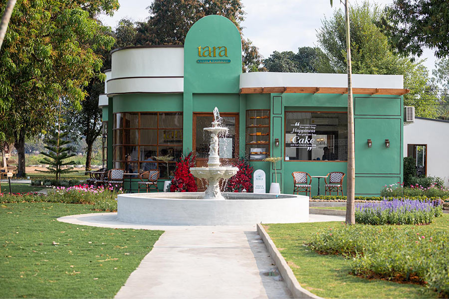 TARA Kaffee&Patisserie’ คาเฟ่ดีไซน์สวยริมแม่น้ำปิงในตัวเมืองจังหวัดตาก โดดเด่นด้วยตัวร้านสีเขียวสไตล์ยุโรปมีน้ำพุตรงกลางแบบสวนอังกฤษ มาพร้อมมุมถ่ายรูปเพียบที่บอกเลยว่าใครกำลังมองหาคาเฟ่ตากในเมืองเพื่อถ่ายรูปเช็คอินอัปลงโซเชียลต้องที่นี่เลย ตัวร้านมีทั้งโซนที่นั่งอินดอร์แอร์เย็นๆ และโซนเอาท์ดอร์กลางสนามหญ้าใต้ร่มเงาไม้ใหญ่ให้รับลมชมวิวแม่น้ำปิงแบบชิลล์ๆ หรือใครอยากจัดปาร์ตี้เล็กๆ ทางร้านก็มีห้องส่วนตัวที่รองรับได้ถึง 10 คนให้บริการ สำหรับเมนูเครื่องดื่มมีทั้งเมนู Coffee และ เมนู Non Coffee ให้เลือก นอกจากนั้นเบเกอรี่ก็บอกเลยว่าห้ามพลาดเพราะหน้าตาน่ากินสุดๆ เช่น Banana Cream Pie, Blueberry Crumble Cheesecake, Blueberry swirl cheesecake, Fudgy Brownie และ Korean garlic bread หรือใครอยากกินอาหารคาวทางร้านก็มีให้เลือกหลากหลายเมนู