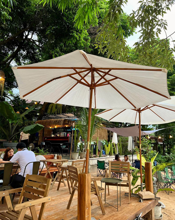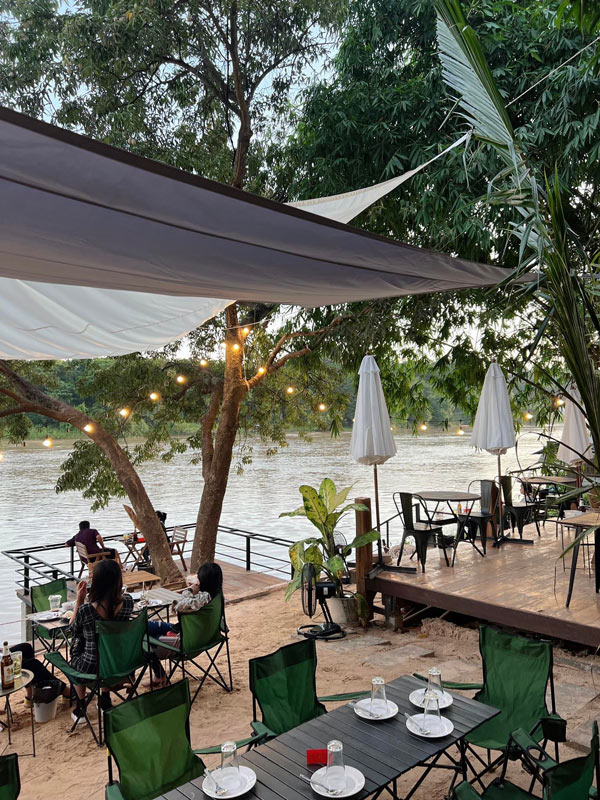 ร้านลับริมแม่น้ํามูล Homebar เป็นทั้งคาเฟ่แอนด์บาร์ เพราะช่วงสายถึงเย็นที่ร้านเปิดโซน coffee bar ที่พร้อมเสิร์ฟเครื่องดื่มอย่าง ชา กาแฟ สปาร์คกลิ้ง และเซ็ตขนมปังหอมกรุ่นอย่าง บราวนี่โฮมเมด ฮันนี่โทส และครัวซองต์เนยสด ในบรรยากาศสวนอันแสนสงบ รับลอมเย็นๆ ติดริมแม่น้ำ บอกเลยว่าการรันตรีความชิลล์ แถมร้านยังมีมุมให้ถ่ายรูปเพียบ ใครเป็นสายคาเฟ่ฮอปปิ้งชอบถ่ายรูปเช็คอินที่คาเฟ่รับรองถูกใจแน่นอน ในช่วงเย็นถึงดึกร้านเป็น Set the Mood Bar ที่เสิร์ฟอาหารและเครื่องดื่ม สามารถชวนครอบครัวมานั่งกินข้าวเย็น ชวนเพื่อนมาแฮงเอาท์ ชวนแฟนมาดินเนอร์ ไปพร้อมๆ กับนั่งฟังดนตรีสดอย่างเพลินๆ ใครมาเที่ยวอุบลแล้วกำลังหาร้านนั่งชิลล์ริมแม่น้ํามูลแนะนำที่นี่เลย