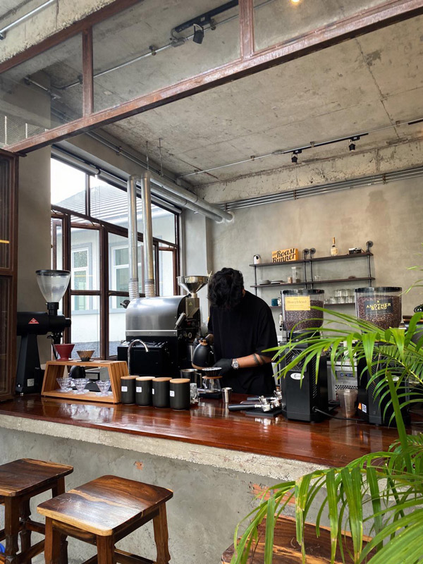 Rogue Roasters คาเฟ่อุบลราชธานี สไตล์ลอฟท์ เน้นโทนสีดำ เทา ด้วยดีไซน์แบบปูนเปลือยตัวร้านจึงให้ความรู้สึกแบบเท่ๆ และมีเอกลักษณ์ ร้านตั้งอยู่ที่ชั้น 2 ของอาคาร สามารถเดินขึ้นบันไดไปได้เลย แอบกระซิบว่ามุมบันไดนี้เป็นอีกมุมที่ฮิตมากๆ ใครมาแล้วก็ต้องขอแชะรูปเพื่อเช็คอินกันสักหน่อย เมื่อขึ้นมาถึงชั้นสองแล้วจะพบกับตัวร้านที่มีทั้งโซนอินดอร์และเอาท์ดอร์ให้เลือกนั่ง สำหรับร้านนี้แนะนำเลยว่าคอกาแฟที่อยากลิ้มรสชาติที่พิถีพิถันและใส่ใจห้ามพลาด เพราะทางร้านมีโรงคั่วกาแฟเป็นของตัวเองด้วย ใครที่มาถึงอุบลราชธานีแล้วกำลังตามหากาแฟดีๆ ต้องมาลองกาแฟของ Rogue Roasters กันสักแก้วสองแก้ว
