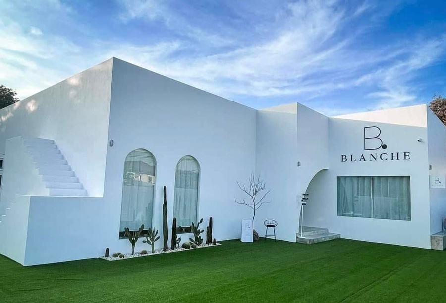 B.Blanche Cafe คาเฟ่โคราชอำเภอเมืองเปิดใหม่แบบสดๆ ร้อนๆ จุดเด่นของร้านคือตึกทรงโมเดิร์นสีขาวโพลน ดึงดูดสายตาชวนให้เข้าไปถ่ายรูปมากๆ ภายในร้านตกแต่งสไตล์มินิมอลเน้นสีขาวคลีน โซนที่นั่งจะเป็นโซนอินดอร์ภายในร้าน มีมุมถ่ายรูปชิคๆ ทั่วบริเวณร้านทั้งข้างนอกและข้างใน ถ้ามาถึงแล้วต้องไม่พลาดมุมบันไดสวรรค์หรือจะยืนเซลฟี่หน้ากระจกก็ออกมาเหมือนอยู่เกาหลีเป๊ะ บอกเลยว่าไปที่นี่ได้รูปกลับมาเพียบแน่นอน ในส่วนของเมนูก็มีเสิร์ฟทั้งเครื่องดื่มและขนม ใครมาเที่ยวโคราชต้องแวะมานั่งชิลล์ๆ ที่นี่สักครั้ง
