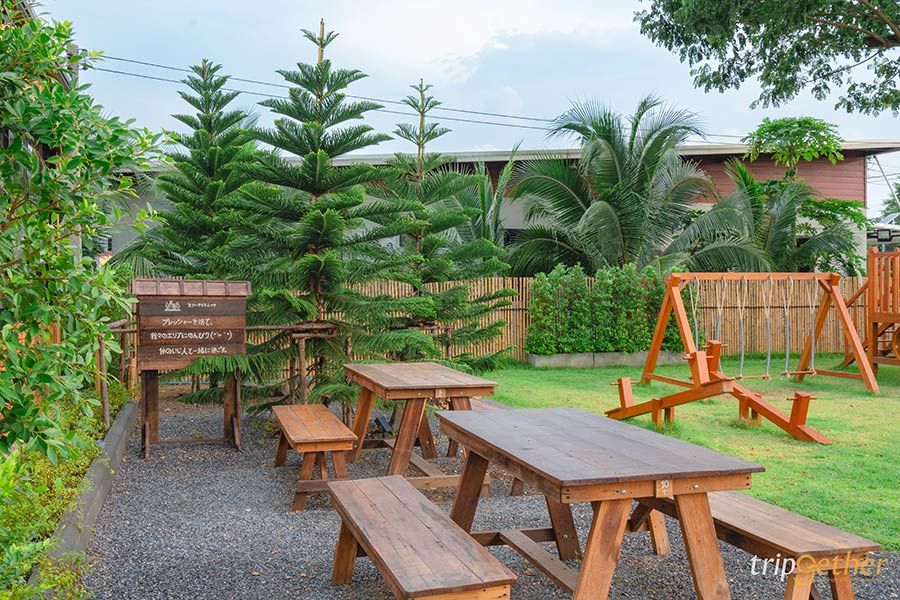 ไปต่อกันกับ คาเฟ่โฮมเมด บรรยากาศอบอุ่นที่ให้กลิ่นอายญี่ปุ่นเบาๆ อย่าง ธรีไอคอนิค คาเฟ่บ้านทรง cabin สไตล์ contemporary ที่ใช้โทนสีน้ำตาลอบอุ่นเป็นหลัก เวลาที่แสงแดดลอดผ่านกระจกบานใหญ่รอบร้าน แสงสวย บรรยากาศดีมาก ในส่วนของเมนูอาหารมีเมนูอร่อยๆ ให้เลือกหลากหลาย ไม่ว่าจะเป็น เมนราเมง เมนูข้าว ของกินเล่น ขนมหวาน และเครื่องดื่ม อีกหนึ่งกิมมิคความน่ารักของที่นี่คือ แผ่นป้ายเอมะสำหรับเขียนคำอธิษฐาน ซึ่งเป็นมุมยอดนิยมที่หลายคนต้องแวะถ่ายรูป