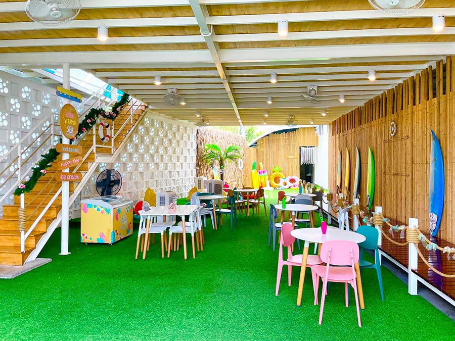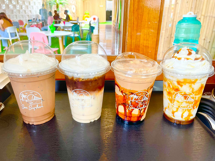ใครว่าสุพรรณบุรีไม่มีชายหาด ต้องลองมา Sea Suphan คาเฟ่น่ารักที่ตกแต่งฟีลออน เดอะ บีช ตัวร้านตกแต่งอย่างสดใส มีทั้งต้นมะพร้าว หาดทราย เซิร์ฟบอร์ด ห่วงยาง เก้าอี้ชายหาด ถ่ายรูปมุมไหนก็เหมือนอยู่ชายหาด สำหรับสายโซเชียลรับรองต้องถูกใจเพราะมุมถ่ายรูปเพียบ ส่วนเมนูทางร้านก็สดชื่นสุดๆ จากไอศกรีมแฮนด์เมดที่มีหลายรสชาติให้ได้เลือก หรือจะเป็นขนมหวาน อย่างฮันนี่โทสต์ วาฟเฟิล เค้ก เครป บอกเลยว่ามาเที่ยวคาเฟ่แบบนี้ก็ต้องสั่งของกินที่สดชื่นหน่อย สั่งมานั่งกินชิลล์ๆ ให้ได้ฟีลนั่งริมชายหาดสุดๆ