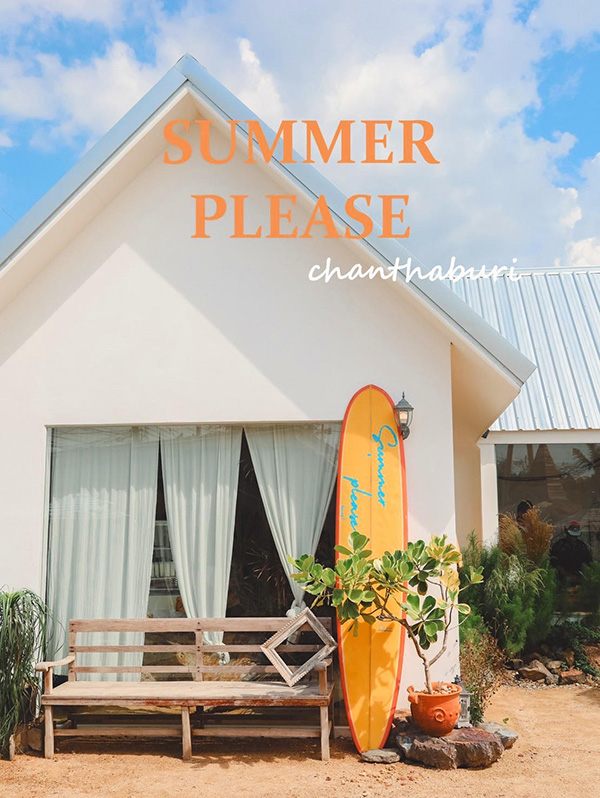 Summer please คาเฟ่น่ารักที่มาในสไตล์บีชบาร์ บรรยากาศชิลล์ๆ อบอุ่นและเป็นกันเอง ตัวร้านออกแบบเรียบง่ายเน้นโทนสีขาวดูสะอาดตา ตัดของตกแต่งที่มีสีสันต่างๆ ทำให้ร้านดูสดใสเข้ากับบรรยากาศชายหาด แถมมุมถ่ายรูปทางร้านก็น่ารักมาก มีแทรกผลงานศิลปะไว้ตามจุดต่างๆ ที่นั่งมีโซนอินดอร์ นั่งห้องแอร์เย็นๆ ฉ่ำๆ หรือจะให้เข้ากับฟีลมาชายหาดก็มีที่นั่งเอาท์ดอร์แบบโอเพ่นแอร์ ใครมาก็อย่าพลาดเมนูน้ำที่เป็นซิกเนเจอร์ อย่าง Pa-Loh (พะโล้) ที่ให้ความสดชื่นเหมือนดื่ม fresh cola ส่วนเมนูอาหารก็แนะนำครัวซองต์เบอร์เกอร์โฮมเมดฉ่ำๆ กรอบนอกนุ่มใน ซึ่งเป็นสูตรพิเศษของทางร้าน ใครแวะมาจันทบุรีแนะนำคาเฟ่ beach style ที่นี่เลย