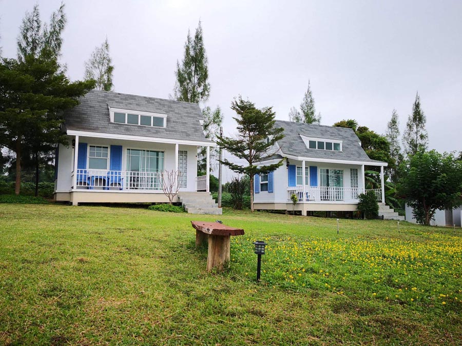 The Farm ที่พักชัยภูมิ อำเภอเทพสถิตย์ ที่ตั้งอยู่ไม่ไกลจากอุทยานแห่งชาติป่าหินงาม ใช้เวลาจากที่พักเพียงสิบนาทีนิดๆ ก็สามารถเดินทางไปชมความงดงามของทุ่งดอกกระเจียวได้แล้ว รีสอร์ทสไตล์ American Cottage เป็นบ้านพักหลังๆ ตั้งเรียงกันอย่างสวยงาม แต่ละหลังยังมีระเบียงพร้อมชุดเก้าอี้ให้นั่งชิลล์ มองวิวธรรมชาติกันด้วย ภายในบ้านพักเน้นตกแต่งด้วยโทนสีขาว ฟ้า น้ำเงิน ที่ดูสบายตาเหมาะแก่การมาพักผ่อนเป็นที่สุด และยังมีสิ่งอำนวยความสะดวกครบครันไม่ว่าจะแอร์ เครื่องทำน้ำอุ่น ตู้เย็น ทีวี บอกเลยใครกำลังหาที่พักบรรยากาศเงียบ สงบ มองเห็นวิวทุ่งหญ้าและเนินเขาที่นี่เหมาะสุดๆ แอบกระซิบว่าใครชื่นชอบการปั่นจักรยานจากที่พักสามารถปั่นไปสถานที่ท่องเที่ยวอย่างน้ำตกวังภราดร ผาสุดแผ่นดิน และทุ่งดอกกระเจียว ได้แบบชิลล์ๆ