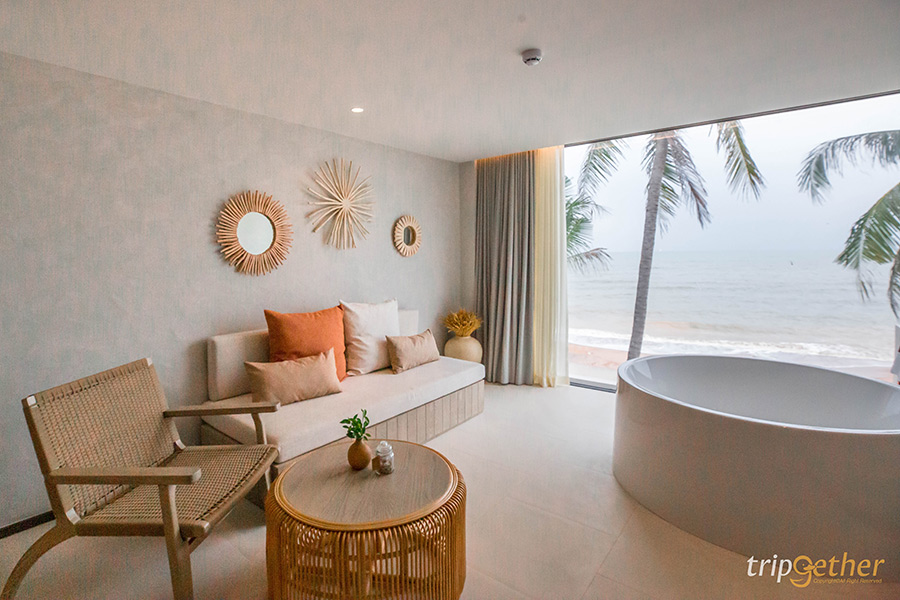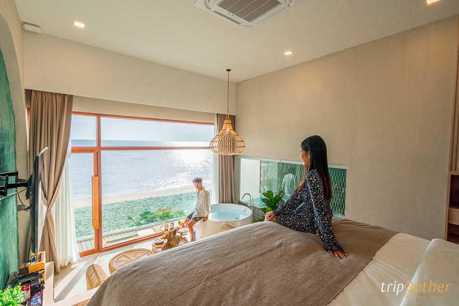 ที่พักจันทบุรี Maldives Beach Resort ให้ฟีลปูซานเพราะโซนที่เปิดใหม่นั้นมาพร้อมกระจกบานใหญ่ที่สามารถมองเห็นวิวทะเลได้แบบเต็มๆ สำหรับโซนใหม่มีห้องพัก 3 แบบให้เลือกคือ Beachfront Honeymoon Suite ห้องพักแบบ 2 ชั้น ที่เตียงหันหน้าสู่ทะเลให้คุณสามารถนอนมองวิวได้จากบนเตียง ที่สำคัญริมหน้าต่างมีอ่างอาบน้ำให้แช่แบบฟินๆ ต่อกันด้วย Beachfront Paradise Suite ห้องพักที่ผนังด้านหน้าเตียงนอนเป็นกระจกใสที่สามารถมองเห็นหาดทรายและวิวทะเลได้อย่างสวยงาม และสุดท้ายคือ Romance Ocean View Studio มีความพิเศษอยู่ที่สามารถมองวิวทะเลได้จากทั้งสองด้านคือทั้งจากบนเตียงและจากอ่างอาบน้ำนั่นเอง สายคอนเทนต์คนไหนกำลังหาที่พักสวยๆ เพื่อนอนชิลล์และถ่ายรูปสวยๆ อัปลงโซเชียล ต้องมาเช็คอินที่ Maldives Beach Resort กันสักครั้ง