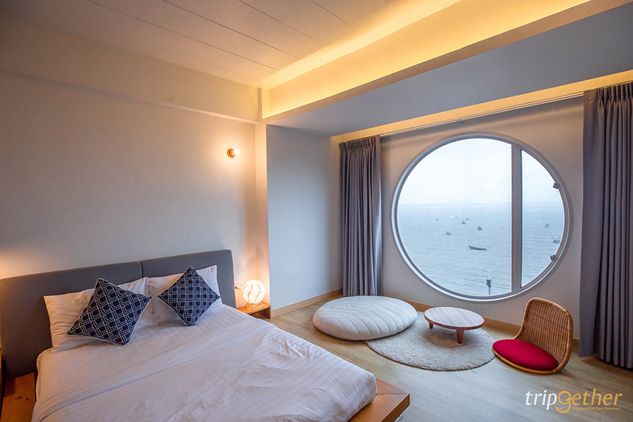 ขอแนะนำที่พักที่พักฟีลปูซานใกล้กรุงเทพฯ อย่าง Marina Sea View Bangsaen ตั้งอยู่ที่ถนนบางแสนล่าง หรือที่หลายคนคุ้นเคยในชื่อของหาดวอนนภา จังหวัดชลบุรี ที่ใช้เวลาเดินทางจากกรุงเทพฯ ประมาณชั่วโมงครึ่งเท่านั้นก็ได้มานอนชิลล์มองวิวทะเลกันแล้ว สำหรับไฮไลท์ของที่ Marina Sea View Bangsaen แห่งนี้อยู่ที่ห้องพักดีไซน์สวยจุดเด่นที่มีหน้าต่างสามารถมองเห็นวิวทะเลและเรือประมงได้อย่างสวยงามจากบนเตียง ซึ่งห้องพัก sea view มีให้เลือกทั้งแบบหน้าต่างวงกลม หน้าต่างสี่เหลี่ยมแบบกรอบ และหน้าต่างบานกว้างแบบเต็มผนังที่สามารถมองเห็นวิวทะเลได้แบบเต็มๆ ใครกำลังหาที่พักสวยๆ ฟีลเกาหลีเหมือนได้บินไปปูซานแนะนำที่นี่เลย