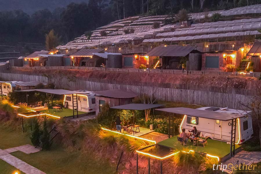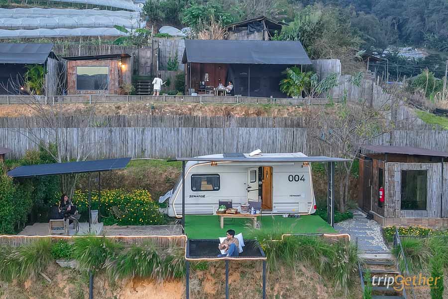 ปิดท้ายกันที่ สตาร์ดอย คอฟฟี่ แอนด์ ฟาร์มสเตย์ (Stardoi Coffee & Farmstay) อีกหนึ่งที่พักรถบ้าน บนดอยสะโง้ มาพร้อมวิวสวยสุดอลังการ มองเห็นได้ถึง 3 ประเทศ ไทย เมียนม่า และ สปป.ลาว รถบ้านที่นี่ตกแต่งสไตล์ยุโรป เรียบหรู ดูแพง ภายในแบ่งเป็นสัดส่วนชัดเจน มีห้องน้ำในตัว ด้านหน้ามีสระว่ายน้ำและอ่างจากุซซี่ส่วนตัว ตื่นเช้ามาแช่น้ำอุ่น ดูหมอก ดูพระอาทิตย์ขึ้น บอกเลยว่าคือที่สุดของการพักผ่อนเลยล่ะ ตกเย็นนั่งชมพระอาทิตย์ลับขอบฟ้า กลางคืนเห็นแสงไฟจากฝั่งประเทศเพื่อนบ้าน และยังมองเห็นดาวผ่านกระจกรถบ้าน บอกเลยว่าเป็นอีกหนึ่ง ที่พักรถบ้าน วิวหลักล้านที่น่าประทับใจมาก