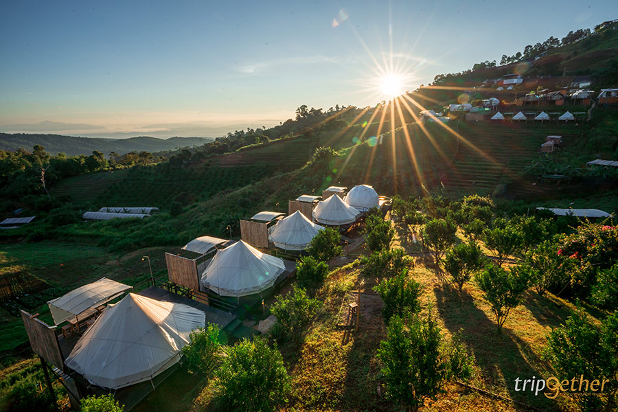 มาปิดท้ายที่พักเชียงใหม่มีสวนส้มกันที่ ภูแสงเทียน โฮมสเตย์ ที่พักบนดอยม่อนแจ่มสไตล์มินิมอลตั้งอยู่บนเนินเขาทำให้มองเห็นวิวได้แบบพาโนราม่า ภาพของภูเขาเขียวขจีสลับซับซ้อนกันไปมากับสายหมอกสวยๆ เป็นภาพบรรยากาศที่ไม่อยากให้ทุกคนพลาดกันเลย ห้องพักของที่นี่แบ่งออกเป็นเต็นท์โดมใสและบ้านหลัง ภายในห้องพักเต็มไปด้วยสิ่งอำนวยความสะดวกมากมายพักผ่อนกับแบบสบายๆ เลย รวมไปถึงกิจกรรมที่ทางที่พักมีให้ไม่ว่าจะเก็บส้มสดๆ จากต้นหรือผักสดๆ ไม่ว่าจะเป็นผักสลัด ผักกาดแก้ว ที่สามารถเดินเก็บกันได้เลย ใครที่อยากมาเที่ยวแบบชิลล์ใกล้ชิดธรรมชาติต้องปักหมุดที่นี่เอาไว้เลย
