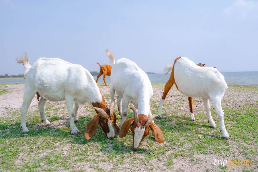 ไปต่อกันที่ ท้ายเขื่อนป่าสักชลสิทธิ์ แลนด์มาร์กลพบุรี บรรยากาศสุดชิลล์ มีทั้งวิวทุ่งหญ้าเขียวๆ สายน้ำและขุนเขา ไฮไลท์สุดพิเศษของที่นี่ก็คือฝูงแพะและแกะตัวน้อยที่ออกมาเดินเล่นกินหญ้ากันอย่างอิสระ ซึ่งนักท่องเที่ยวสามารถซื้ออาหารมาให้น้องๆ ได้ด้วยนะ ฟีลเดียวกับไปฟาร์มแกะต่างประเทศเลย รับรองว่าได้ทั้งรูปสวยและโมเมนต์น่ารักๆ กลับบ้านแน่นอน ใครอยากได้ฟีลนิวซีแลนด์บอกเลยต้องมาที่นี่
