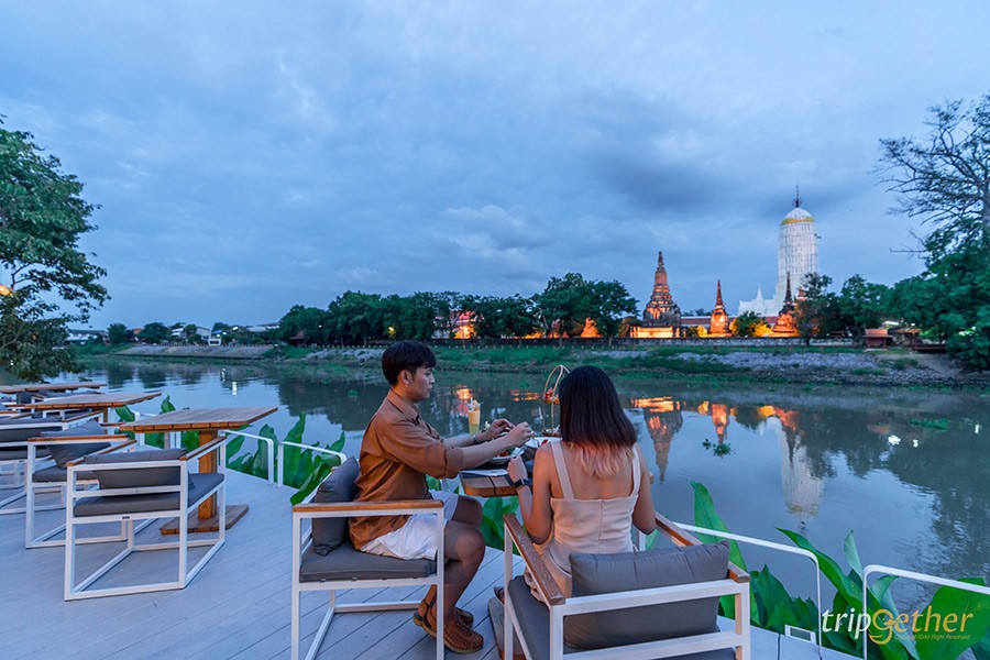 สายถ่ายรูปแต้องไปที่ ศาลาอยุธยา อีทเทอรี่ แอนด์ บาร์ ร้านนี้ตั้งอยู่ในทำเลที่เรียกได้ว่าปังสุดๆ เพราะอยู่ฝั่งตรงข้ามกับ วัดพุทธไธศวรรย์ พอดิบพอดี ภาพพระปรางค์สีขาวองค์ใหญ่ที่ตั้งตระหง่านริมน้ำคือวิวที่คุณจะเห็นได้แบบความคมชัดระดับ HD จากโซนเอาท์ดอร์ริมน้ำ บรรยากาศช่วงโพล้เพล้ที่นี่สวยโรแมนติกมาก ในส่วนของเมนูอาหารมีให้เลือกทั้ง อาหารไทยต้นตำรับ และ อาหารนานาชาติมากมาย ที่จัดจานมาอย่างประณีต เหมาะมากสำหรับการมาเดทหรือฉลองโอกาสพิเศษ