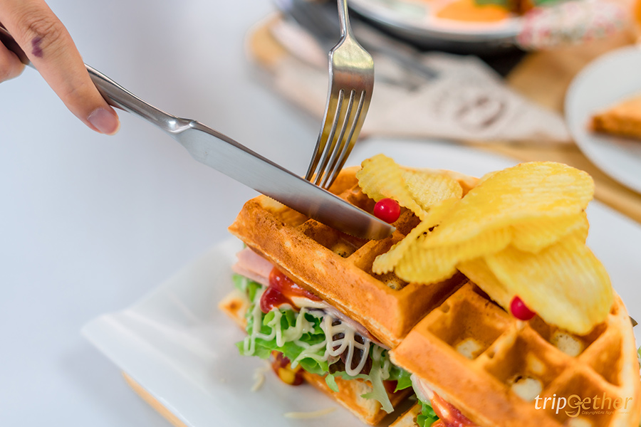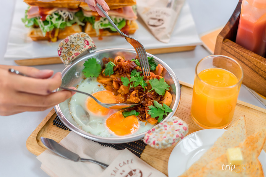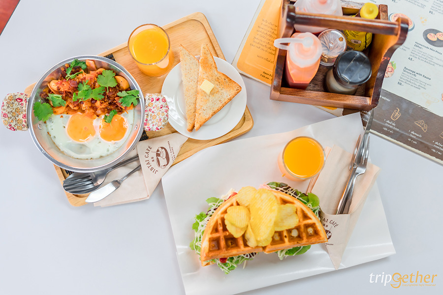 มาเริ่มที่ร้านแรกกันเลยกับร้าน จิบไถ่คาเฟ่ ร้านลับๆ ตั้งอยู่ในตึก CEC ข้างๆ วัดเสมียนนารี เมนูอาหารของร้านจะเป็นแนวไข่กระทะและวาฟเฟิล มีหลายเมนูให้เลือกเยอะมาก แต่เมนูที่เราอยากนำเสนอให้ทุกคนไปลองก็คือ เมนูจิบไถ่ไข่กระทะ เป็นเมนูซิกเนอเจอร์ของทางร้าน และอีกหนึ่งเมนูที่อยากให้ชิมก็คือเมนูวาฟเฟิล คลับแซนด์วิช รับรองว่ารสชาติอร่อยกลมกล่อมทุกเมนู พลาดไม่ได้เลย!