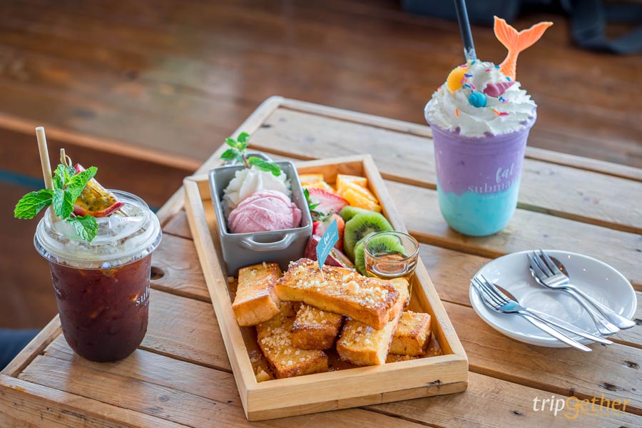 ใครข้ามไปเที่ยวเกาะล้าน ห้ามพลาดร้านนี้เด็ดขาด แฟต ซับมารีน คาเฟ่ (Fat Submarine Cafe) คาเฟ่ชลบุรี ริมทะเล ฟีลมินิมอลที่ตั้งอยู่ใกล้ตลาดหน้าวัด เดินทางง่ายมาก ภายในร้านตกแต่งด้วยไม้และโทนสีสดใส ถ่ายรูปออกมาแล้วได้ฟีลสบายๆ ชิลล์ๆ ไวบ์ทะเลจ๋าแบบสุดๆ สำหรับเมนูเด็ดที่ต้องลองเลยก็คือ ข้าวกุ้งผัดพริกเกลือ ข้าวขยุ้มปลาทูและไข่เจียว French Toast Submarine Signature Coffee บอกเลยว่าอร่อยเด็ด แถมตกแต่งสวยทุกเมนู