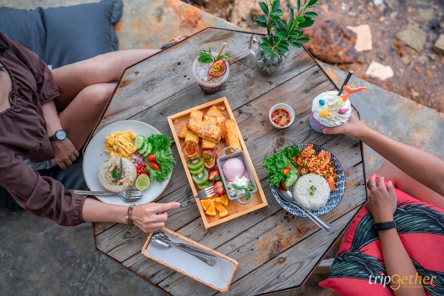 ไปกันต่อที่ ลากูน่า (Laguna Cafe) คาเฟ่สไตล์บาหลีที่ให้ฟีลเหมือนติดอยู่บนเกาะสุดๆ ทั้งร้านตกแต่งด้วยวัสดุธรรมชาติ โทนสีน้ำตาลตัดกับน้ำทะเลสีฟ้าคือสวยมาก ถ่ายรูปได้แทบทุกมุมเลย ในส่วนเมนูอาหารจัดเต็มแบบซีฟู้ดสายลุย ทั้งต้มยำทะเล สปาเก็ตตี้ทะเล กระทะร้อน หรือเมนูเผาต่างๆ เรียกได้ว่าไม่ว่าจะเป็นเมนูคาว หวาน หรือเครื่องดื่มที่นี่ก็มีครบ เหมาะมากถ้าจะพาคนพิเศษมากินมื้อดีๆ พร้อมวิวสวยๆ