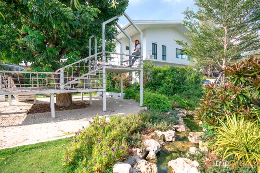 ไปกันต่อที่ นิทาน คาเฟ่ แอนด์ การ์เด้น (Nitan Cafe & Garden) คาเฟ่บรรยากาศชิลล์ๆ ร่มรื่นเย็นสบายในสวนสวยสไตล์ชนบทอังกฤษ ใจกลางเมืองปทุมธานี มีลำธารเล็กๆ ที่ช่วยเติมความสดชื่น ให้ฟีลเหมือนหลุดเข้าไปในโลกนิทานเลยล่ะ มีบ้านต้นไม้ ลานทราย และสนามหญ้าเขียวๆ ที่เหมาะกับการพักผ่อนของครอบครัว และให้น้องๆ หนูๆ ได้วิ่งเล่น สำหรับเมนูอร่อยๆ ก็มีให้เลือกทั้งอาหาร เครื่องดื่ม ของหวาน และไอศกรีมตกแต่งอย่างพิถีพิถัน บอกเลยว่าน่ากินมาก นอกจากนี้ทางร้านยังมี Art Space ให้เราได้ระบายสีสันและปลดปล่อยจินตนาการไปกับศิลปะอีกด้วยนะ