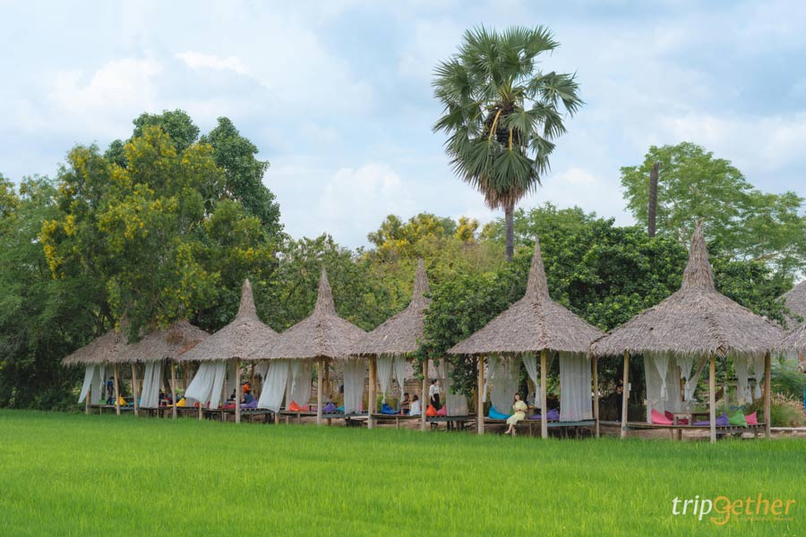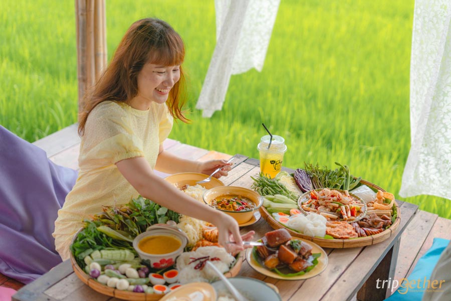 และมาปิดท้ายกันที่ จัดจ้านสะท้านทุ่ง สาขาเมืองปทุม คาเฟ่อาหารอีสานกลางทุ่งนา บนพื้นที่ที่กว้างขวางกว่า 3 ไร่ มีโซนที่นั่งให้เลือกหลากหลาย แต่บอกเลยว่าทุกที่นั่งก็เห็นวิวความเขียวขจีของทุ่งนากันแบบเต็มๆ เลยล่ะ ในส่วนของเมนูอาหารก็บอกเลยว่าจัดเต็มแบบสุดๆ มีทั้งอาหารอีสาน อาหารตามสั่ง เมนูต้ม ผัด แกง ทอด ยำ หมูกระทะ เครื่องดื่มสมุนไพร และเครื่องดื่มโบราณคือมาครบ แอบกระซิบว่าถ้าไปช่วงเย็นๆ บรรยากาศดีมาก ใครอยากนั่งกินข้าวริมนา สัมผัสธรรมชาติใกล้กรุงเทพต้องจดพิกัดไว้