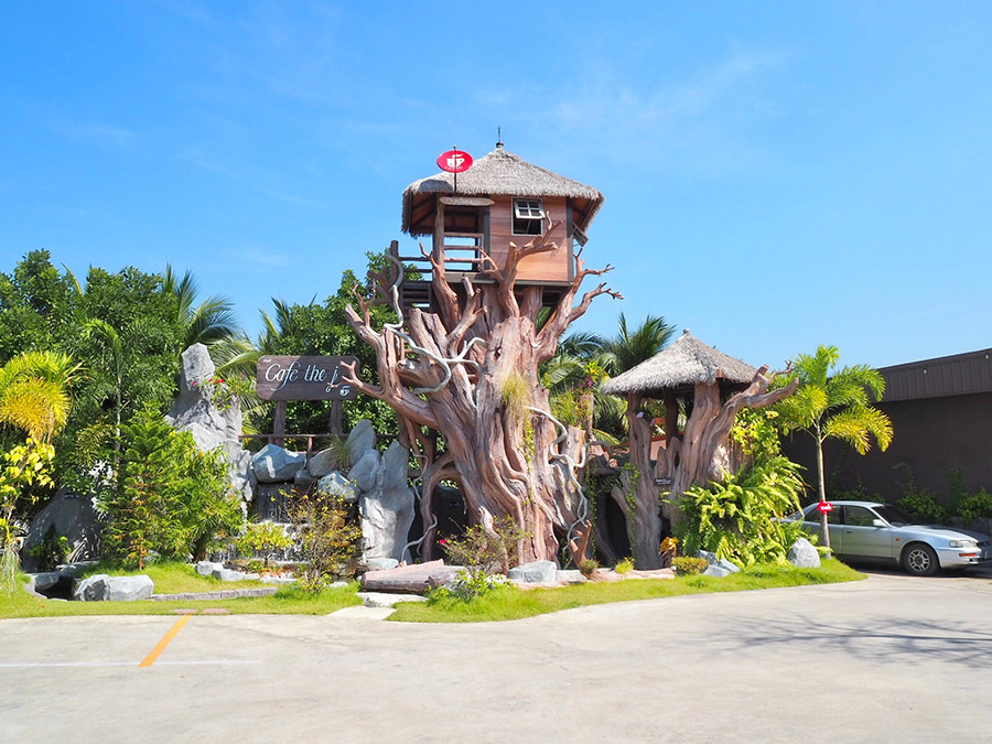 มาต่อกันที่ร้านสุดท้ายกับ Cafe the J คาเฟ่บ้านต้นไม้ใกล้ๆ กับวัดไร่ขิง เดินเข้ามาหน้าร้านจะมีบ้านต้นไม้ใหญ่สูงถึง 5 เมตร ตั้งอยู่ เราสามารถขึ้นไปชมวิวหรือถ่ายรูปมุมสูงจากด้านบนต้นไม้ได้ด้วย รับรองว่าประทับใจแน่นอน ซึ่งในร้านจะมีที่นั่งแบ่งเป็นสองโซน คือโซนแอร์และโซนนั่งชิลล์ๆ อยู่ริมน้ำ บรรยากาศดีมาก มุมถ่ายรูปเพียบ อาหารบางเมนูของทางร้านจะเสิร์ฟมาในกระบอกไม้ไผ่ด้วย หน้าตาน่ากินและดูแปลกใหม่สุดๆ กินข้าวเสร็จก็เดินทางไปทำบุญกันที่วัดไร่ขิงต่อได้เลย