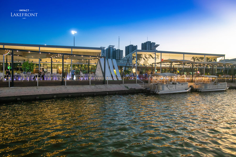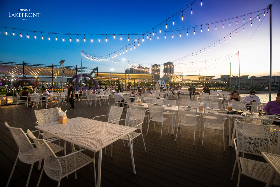 Impact Lakefront ร้านอาหารเมืองทองธานี สุดปังด้วยโลเคชั่นริมทะเลสาบเมืองทองธานี แถมใกล้ฮอลล์คอนเสิร์ตอย่างอิมแพ็คอารีน่าแบบสุดๆ ใช้เวลาขับรถเพียง 4 นาทีเท่านั้น และที่สำคัญคือเปิดให้บริการจนถึงเที่ยงคืนเลย เอาใจคนดูคอนเสิร์ตเสร็จแล้วมองหาของกินต่อสุดๆ ที่นี่มีร้านอาหารให้เลือกถึง 4 สไตล์ด้วยกัน “บรีซ คาเฟ่ แอนด์ บาร์” ที่ให้บริการอาหารนานาชาติร่วมสมัย แต่ยังคงกลิ่นอายความเป็นเอเชีย “อุวะจิมะ” ร้านอาหารญี่ปุ่นที่เน้นเมนูซูชิและอาหารทะเลชาร์โคลกริลล์คุณภาพเยี่ยม รังสรรค์ความอร่อยด้วยวัตถุดิบชั้นเลิศที่ สดใหม่ พร้อมทั้งใส่ความคิดสร้างสรรค์ลงไปในเมนูแบบดั้งเดิม ร้าน “อีสาน จิ้มจุ่ม” ที่ขึ้นชื่อเรื่องจิ้มจุ่มและอาหารอีสานรสเด็ด และ ร้าน “แจ็คกี้ ซีฟู้ด” ที่เป็นดั่งสวรรค์ของคนรักอาหารทะเลเลย นอกจากนี้ที่นี่ยังมีบริการล่องเรือ Pontoon Boat Cruise และยังรับจัดงานเลี้ยงด้วย ใครมาแถวเมืองทองธานีต้องไม่พลาดร้านนี้เด็ดขาด