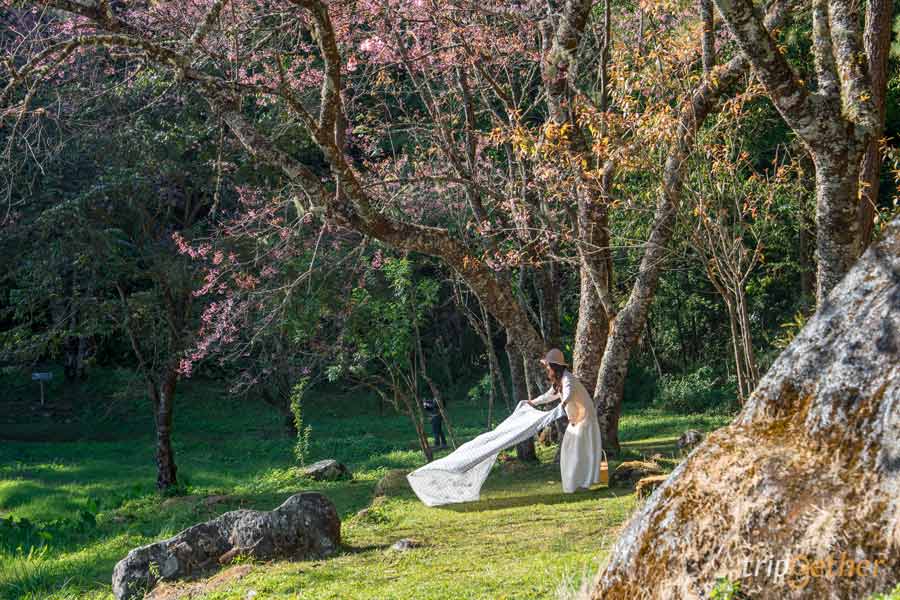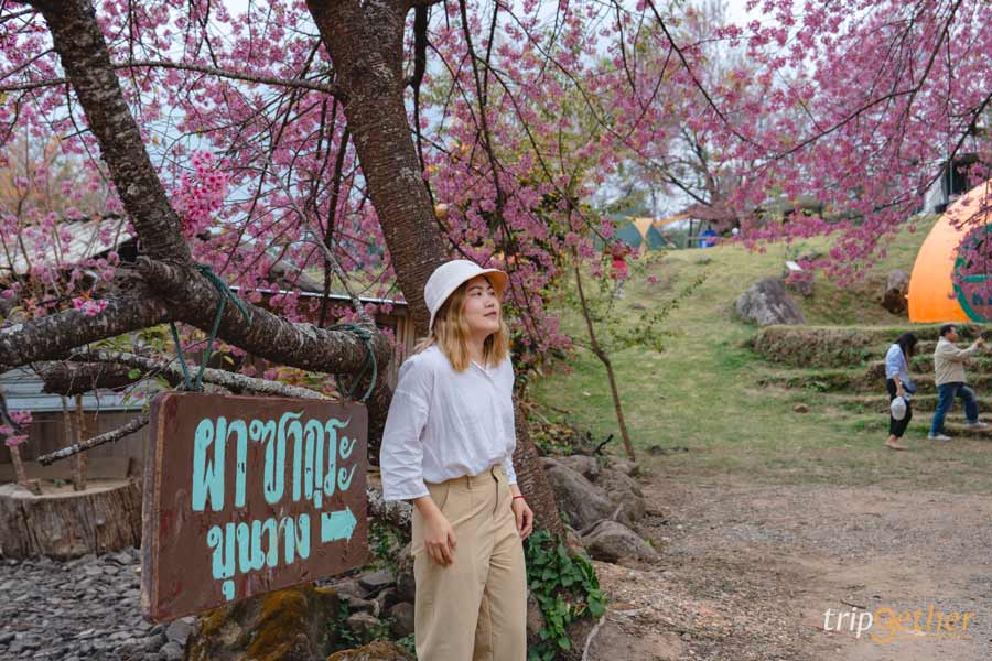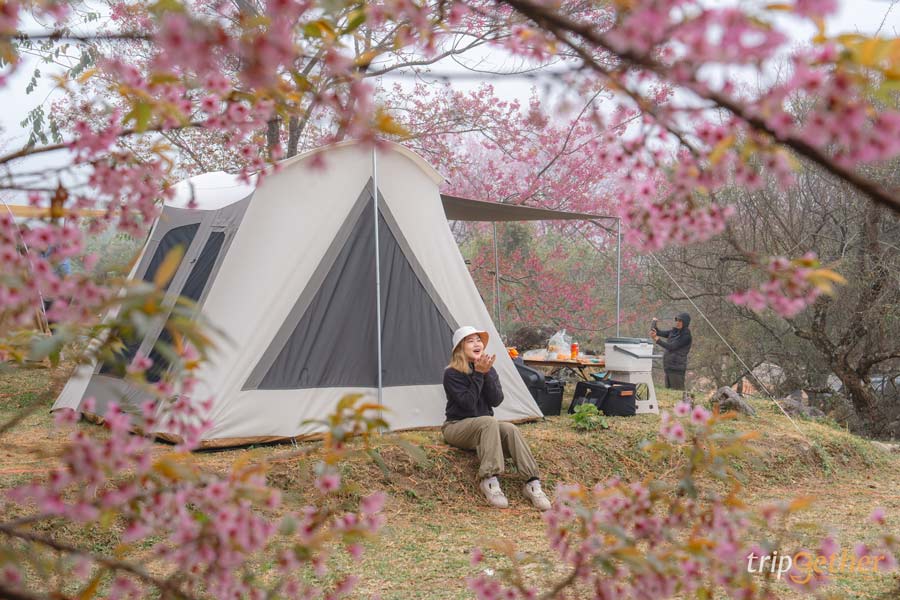 ตื่นมาดูซากุระหน้าที่พัก ฟีลแคมป์ปิ้งสุดโรแมนติก ที่ ผาซากุระ ขุนวาง เพราะที่นี่ปลูกต้นนางพญาเสือโคร่งไว้ใกล้ลานกางเต็นท์แบบสุดๆ เมื่อถึงฤดูดอกไม้บาน จะเกิดเป็นอุโมงค์ซากุระสีชมพูสดใส ถ่ายรูปมุมไหนก็สวยเหมือนญี่ปุ่น นอกจากนี้ที่นี่มีทั้งบ้านพักและลานกางเต็นท์ (ค่ากางเต็นท์ประมาณ 200 บาท) พร้อมบริการอาหารเช้า หมูกระทะ ชา และกาแฟ ใครอยากสัมผัสอากาศหนาว ตื่นเช้ามาดูดอกไม้ก่อนใคร ต้องปักหมุดมาเลย