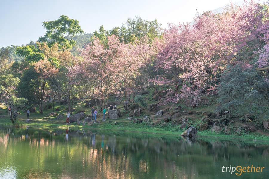 เริ่มต้นกัที่ จุดชมดอกนางพญาเสือโคร่ง เชียงใหม่ ริมทะเลสาบ ท่ามกลางป่าดิบเขา โครงการอนุรักษ์พันธุ์กล้วยไม้รองเท้านารีอินทนนท์ โครงการตามพระราชดำริของสมเด็จพระนางเจ้าสิริกิติ์ฯ นอกจากจะได้เรียนรู้เรื่องกล้วยไม้รองเท้านารีแล้ว ในช่วง เดือนมกราคม ที่นี่ยังเป็นหนึ่งในจุดแรกๆ ที่ดอกนางพญาเสือโคร่งเริ่มบาน ต้นซากุระเมืองไทยจะเรียงตัวรอบทะเลสาบเล็กๆ ท่ามกลางอากาศหนาวและความเงียบสงบ เหมาะกับการเดินเล่น ถ่ายรูป และตั้งแคมป์ใกล้ชิดธรรมชาติ ใครชอบบรรยากาศป่าเขาแบบสงบๆ ต้องหลงรักที่นี่แน่นอน