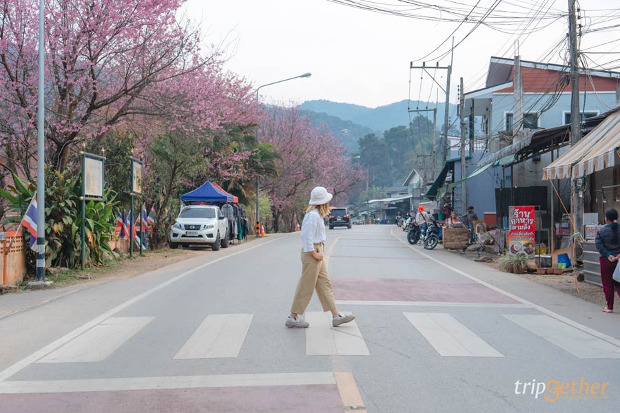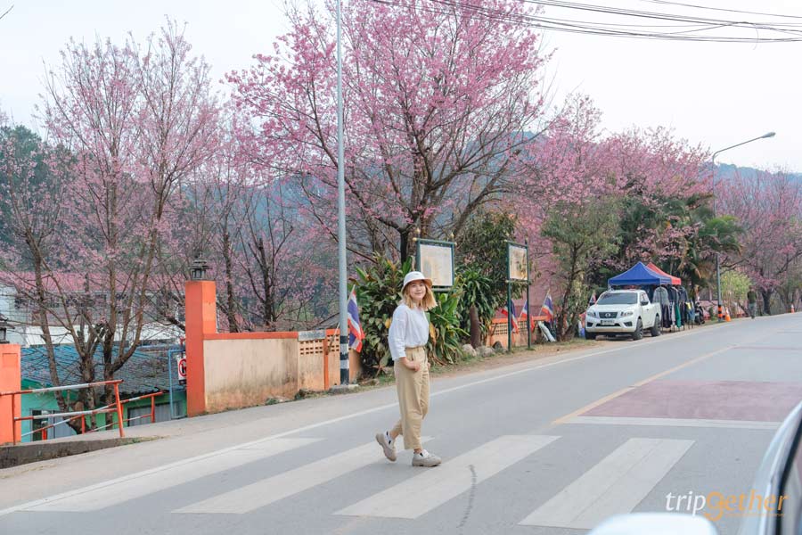 ปิดท้ายด้วย จุดชมดอกนางพญาเสือโคร่ง เชียงใหม่ กันที่ โรงเรียนขุนกลาง บนถนนสายบ้านขุนกลาง–ขุนวาง ด้านหน้าโรงเรียนมีต้นซากุระเมืองไทยเรียงรายตลอดริมทาง ขับรถผ่านก็รู้เลยว่าสวย ทางโรงเรียนมีการจัดพื้นที่ให้ถ่ายรูปอย่างเป็นระเบียบ และมีร้านเครื่องดื่มเล็กๆ ให้แวะพัก เป็นจุดแวะถ่ายรูปสั้นๆ ที่เหมาะมากสำหรับคนไม่อยากเดินเยอะ แต่ยังอยากได้ภาพสวยๆ กลับบ้าน