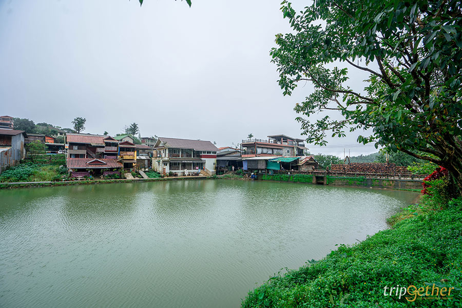 ไฮไลท์ที่โดดเด่นของบ้านอีต่องก็หนีไม่พ้น สระน้ำกลางหมู่บ้าน เรียกได้ว่าเป็นเอกลักษณ์ที่ใครมาก็ต้องมาถ่ายรูปหรือเดินเล่นชิลล์ๆ สระน้ำนี้อยู่หน้าหมู่บ้านติดกับลานจอดรถเลย เพียงเดินเข้ามาก็สัมผัสได้ถึงความสดชื่นของสระน้ำขนาดใหญ่ โดยสระย้ำมีจะมีทางเดินยาวเคียงข้างสระน้ำ และมีที่พักต่างๆ ปลูกติดอยู่กับริมน้ำ บรรยากาศคือเย็นสบายและสโลว์ไลฟ์มากๆ เป็นสถานที่สามารถเดินเล่นได้ทุกช่วงเวลา อีกทั้งในสระน้ำยังมีปลาตัวน้อยๆ มากมาย เราก็สามารถมาให้อาหารปลาตรงนี้ได้ด้วยนะ