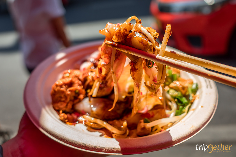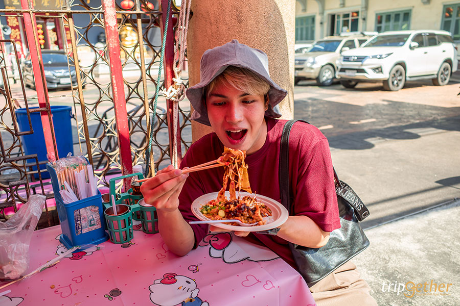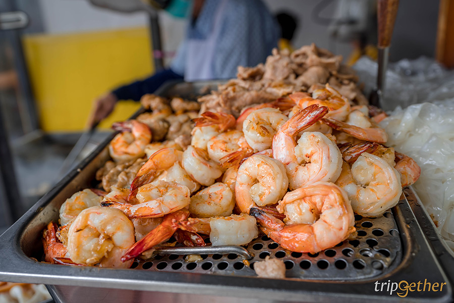 มาต่อกันที่ร้านก๋วยเตี๋ยวหลอดเจ๊เอ็ง ร้านอร่อยย่านเยาวราชที่เด็ดไม่แพ้กันเพราะเปิดมากว่า 40 ปี แล้ว ตัวร้านตั้งอยู่ตรงข้ามกับ MRT วัดมังกร เป็นร้านรถเข็นเล็กๆ หน้าศาลเจ้ากวางตุ้งที่เปิดขายก๋วยเตี๋ยวหลอดร้อนๆ เส้นเหนียวนุ่มสูตรโบราณแบบจีนแท้ๆ พร้อมเครื่องแบบจุกๆ ทั้งไชโป้ว เต้าหู้ กุ้งแห้ง ถั่วงอก กระเทียม กากหมูเจียว และต้นหอม ราดด้วยซอสสูตรเด็ดรสชาติกลมกล่อมกินพร้อมกับเส้นก๋วยเตี๋ยวและเครื่องต่างๆ นอกจากนี้ความพิเศษของก๋วยเตี๋ยวหลอดเจ๊เอ็งคือทอดมันที่เสิร์ฟมาคู่กันบอกเลยว่าอร่อยเด็ดจนอยากให้ทุกคนตามมาเช็คอินเลย