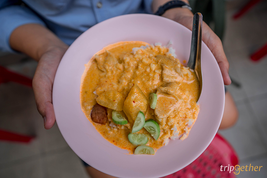 ปิดท้ายร้านอร่อยในกรุงเทพฯ ด้วยร้านที่มีเอกลักษณ์อย่างร้านข้าวแกงเจ๊กปุ้ย ร้านข้าวแกงที่เปิดมาแล้ว 70 ปี การันตีความอร่อยด้วยเหล่าลูกค้าที่แวะเวียนกันมาไม่ขาดสายผลัดกันลุกผลัดกันนั่งเหมือนเก้าอี้ดนตรีเพราะทางร้านมีเพียงเก้าอี้ไม่มีโต๊ะ ตั้งอยู่ในซอยข้างวัดมังกร มีเมนูเด็ดมากมายไม่ว่าจะเป็นแกงกะหรี่หมูใส่ฟัก แกงกะหรี่เนื้อ แกงเขียวหวานไก่ ผัดหน่อไม้ไก่ พะแนงหมู ผัดเผ็ดปู ไข่พะโล้ หมูหวาน ซี่โครงหมูอบพริกเผา ปีกไก่เหล้าแดง ใครอยากลองมากินข้าวแกงเก้าอี้ดนตรีสามารถแวะกันมาได้เลย ซึ่งตอนนี้ทางร้านมีการย้ายร้านใหม่อยู่ในซอยเดิมเลยเดินเข้าไปอีกนิดก็จะเจอป้ายบอก หาไม่ยากแน่นอน
