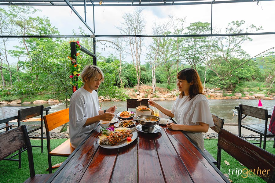 ปิดท้ายกันที่ ครัวริมธาร ร้านอาหารใกล้เทพ วิวสวย ท่ามกลางธรรมชาติ อยู่ติดลำธารน้ำตกวังตะไคร้ บรรยากาศดีมาก มีที่นั่งให้เลือกหลากหลายมุมเลยทีเดียว ในส่วนของเมนูอาหารก็มีให้เลือกหลากหลาย โดยจะเน้นอาหารไทยรสชาติอร่อยกลมกล่อมและอาหารอีสานรสชาติจัดจ้านถึงใจ หรือจะเป็นเมนูซีฟู้ดสดๆ ก็มีนะ แต่ละจานจัดเสิร์ฟมาหน้าตาน่ากิน ทีเด็ดที่ห้ามพลาดเลยก็คือ แกงคั่วหอยขม ผัดฉ่าปลาคัง ห่อหมกทะเลมะพร้าวอ่อน และกุ้งคั่วพริกเกลือ ใครมีแพลนไปเที่ยวนครนายกเพิ่มร้านครัวริมธารไว้ในลิสต์ได้เลย