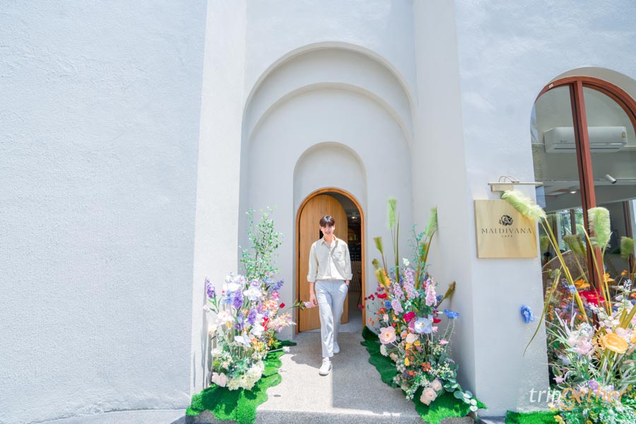มาเริ่มที่แรกกันเลย กับ มัลดีวานา คาเฟ่ (Maldivana Cafe) คาเฟ่ใกล้กรุงเทพ ริมทะเลจันทบุรี เป็นคาเฟ่ที่ตั้งอยู่ด้านหน้า Maldives Beach Resort หาง่ายมาก มีที่จอดรถสะดวก แถมจากร้านยังเดินไปทะเลได้เลย ตกแต่งร้านสไตล์มินิมอลเน้นใช้เอิร์ธโทน อย่างสีครีม น้ำตาล ตัดกับสีสันของดอกไม้และต้นไม้ บอกเลยว่าหยิบกล้องขึ้นมาถ่ายมุมไหนก็สวย ส่วนเมนูของทางร้านมีทั้งเครื่องดื่ม เบเกอรี่ รวมถึงอาหารก็พร้อมเสิร์ฟครบเลย
