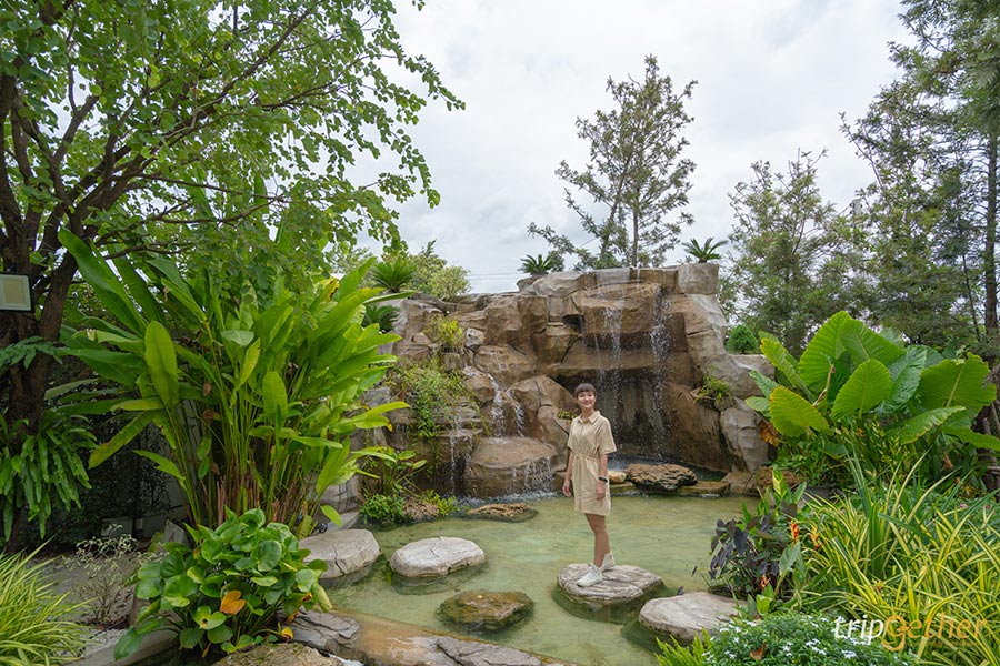 ประกาย คาเฟ่ คาเฟ่สไตล์แคมป์ปิ้งที่ไม่ต้องเดินทางไปต่างจังหวัด แต่บรรยากาศที่นี่คืออยู่กลางธรรมชาติอย่างแท้จริง แถมยังอยู่ติดริมน้ำ มีลมพัดสบายๆ เข้ามาตลอด ภายในร้านกว้างขวางบนพื้นที่กว่า 3 ไร่ แบ่งเป็นสัดส่วนอย่างชัดเจน ตั้งแต่โซนอินดอร์ห้องแอร์ไปจนถึงโซนเอาท์ดอร์กลางสวน ทุกพื้นที่รายล้อมไปด้วยต้นไม้ใบหญ้า รวมถึงมีไฮไลท์ที่น้ำตกจำลองกลางสวนที่ดูแล้วรู้สึกสดชื่นมากๆ สำหรับโซนที่เป็นแคมป์ปิ้งจะตามจุดต่างๆ ในสวน มีเต็นท์ เก้าอี้สนาม และอุปกรณ์อย่างครบครัน เรียกได้ว่าเอามาถ่ายรูปเป็นพร็อพได้เลย ส่วนเมนูมีเยอะมาก ครบทั้งของคาว ของหวาน และเครื่องดื่ม