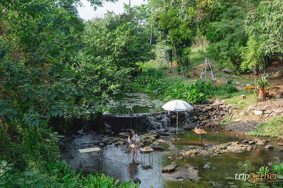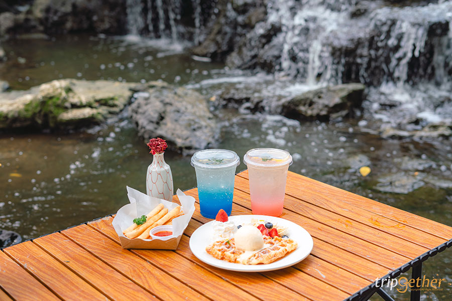 มานั่งชิลล์กลางธรรมชาติกันที่ Cozy Cafe Camp คาเฟ่สไตล์แคมป์ปิ้งกับบรรยากาศน่ารักและเป็นกันเอง โอบล้อมอยู่กลางต้นไม้ใหญ่ มีน้ำตกเล็กและลำธารใสไหลผ่าน ใครที่อยากมานั่งชิลล์ ให้ธรรมชาติช่วยดีท็อกซ์ความเหนื่อยล้าที่นี่ถือว่าตอบโจทย์เลย ส่วนที่นั่งจะกระจายอยู่ตามใต้ต้นไม้ หรืออยากนั่งแช่เท้าเย็นๆ ก็มีที่นั่งกลางน้ำด้วย ส่วนเมนูเครื่องมีทั้งชา กาแฟ โซดา รวมถึงเบเกอรี่หอมๆ อย่างพาย โทสต์ ครอฟเฟิล และมีของกินเล่นอีกเพียบ เรียกได้ว่าเป็นคาเฟ่ฟีลดี เดินทางไม่ไกลจากกรุงเทพฯ ก็ได้เสพความกรีนฉ่ำๆ