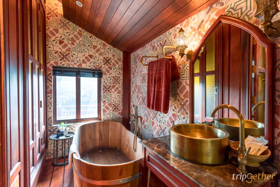ไปกันต่อที่ อยุธยา รีทรีต รีสอร์ท (Ayutthaya Retreat) ที่พักสวยสไตล์ไทย ที่เหมือนหลุดไปอยู่ในทวิภพ บอกเลยว่ามู้ดความเป็นไทยครบทุกตารางนิ้ว ทั้งดีไซน์และบรรยากาศ ร่มรื่นไปด้วยพื้นที่สีเขียวของไม้ใหญ่มากมาย มีเรือให้พายในสระน้ำสีมรกตกลางที่พักด้วย หรือจะนอนเปลชิลล์ๆ มีคาเฟ่ให้สัมผัสเมนูเครื่องดื่มและขนมไทยฟิวชั่นแบบเน้นๆ สำหรับห้องพักที่มีให้เลือกหลากหลายมาก มีทั้งห้องวิลล่าไทยเดิม ห้องดีลักซ์และห้องซูพีเรีย บัคโคนี มาพร้อมสิ่งอำนวยความสะดวกครบทั้งเฟอร์นิเจอร์ไม้สวยๆ ทั้งโต๊ะ เก้าอี้ และกระจกจัดวางอย่างสวยงามลงตัว ถ่ายรูปงามๆ ไทยๆ ได้ทุกมุมเลย