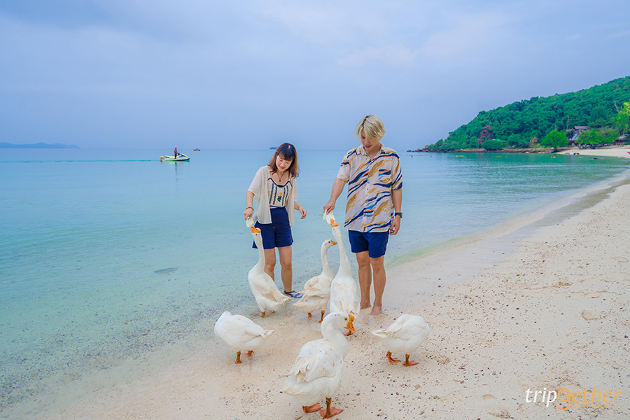 ถ้าอยากได้คอนเท็นต์รูปคู่กับน้องห่านสุดคิวท์ ต้องมาที่ หาดเทียน ที่นี่โด่งดังมากเรื่องความน่ารักของน้องห่านที่แสนรู้สุดๆ แค่เราถือตะกร้าผักน้องๆ ก็จะเดินตามมาเป็นแก๊งค์ให้เราได้ถ่ายรูปเล่นแบบใกล้ชิด นอกจากน้องห่านแล้ว หาดเทียนยังมีสะพานไม้ที่ทอดยาวเลาะริมหาดเป็นจุดเช็คอินที่ห้ามพลาด น้ำทะเลที่นี่นิ่งและใสมาก เหมาะแก่การเดินถ่ายรูปชิลล์ๆ ได้ทั้งวัน