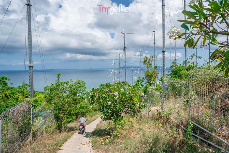 “จุดชมวิวกังหันลม” เป็นจุดชมวิวที่น่าสนใจนอกจากจะเป็นจุดถ่ายรูปที่สวยงามแล้ว เจ้ากังหันลมพวกนี้แหล่ะที่ใช้ผลิตไฟฟ้า เพื่อใช้ภายในเกาะล้าน ตั้งเรียงรายเต็มไปหมด โดยด้านบนสุดยังมีระเบียงทางเดินรอบทิศ ที่จะให้คุณเดินชมวิวหาดนวลและหาดแสมได้แบบเต็มที่ การเดินทางอาจจะต้องขี่รถมอเตอร์ไซค์แบบระมัดระวังหน่อยนะคะ เพราะทางค่อนข้างชัน