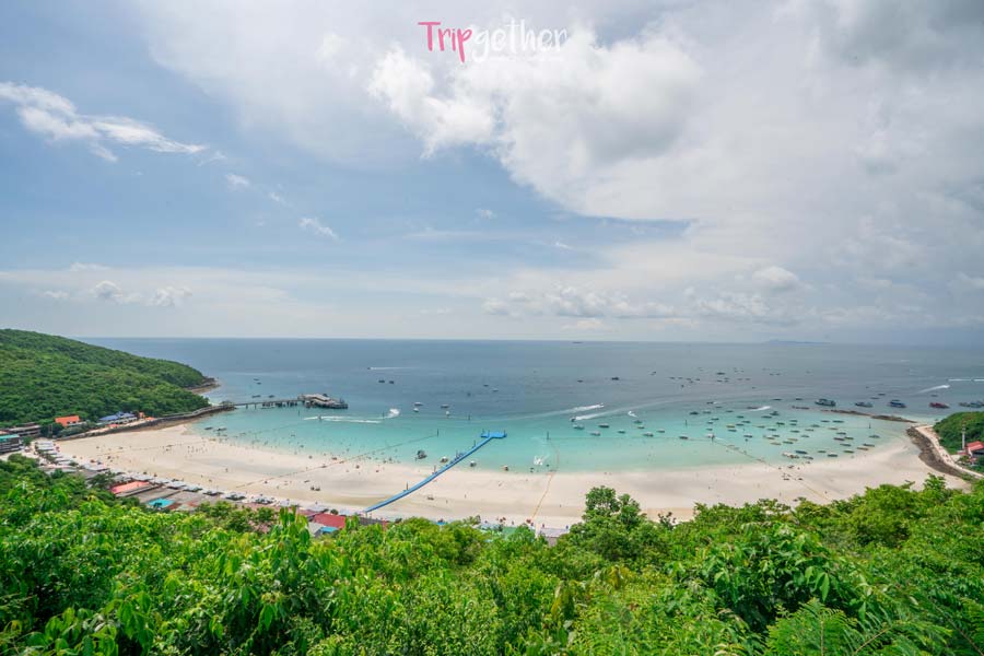 “สำนักสงฆ์แสนล้าน” จุดชมวิวที่อยู่ระหว่างหาดตาแหวนของเกาะล้าน ซึ่งคุณสามารถเดินชมความงามได้แบบ 180 องศาทางขึ้นค่อนข้างชันนิดหน่อยนะคะ แต่ไม่ต้องกังวลไปคุณอาจจะต้องขี่รถแบบระมัดระวังหน่อยนะคะ เมื่อมาถึงด้านบนจะเป็นที่นั่งชมวิวบนชะง่อนหิน ซึ่งคุณจะสามารถมองหาดตแหวนได้แบบชัดแจ๋ว นอกจากจะเห็นน้ำทะเลสุดลูกหูลูกตาแล้ว ยังจะเห็นความอุดมสมบรูณ์ของต้นไม้ด้วยนะคะ
