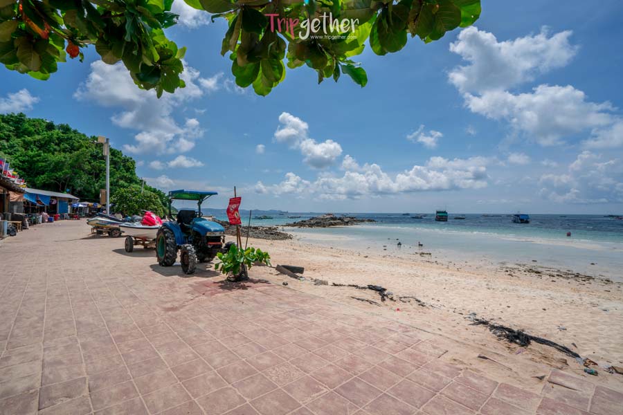 “ท่าหน้าบ้าน” เป็นท่าที่เป็นทางเข้าหลัก ที่เป็นที่นิยมเพราะที่ท่าหน้าบ้าน มีที่พักที่เป็นที่นิยมมากมาย และมีมีสิ่งอำนวยความสะดวกมากมาย ทั้งร้านเช่ามอเตอร์ไซค์ ร้านค้า และร้านอาหาร ซึ่งเวลากลางวันจะคึกคักมากเพราะมีนักท่องเที่ยวมาบริเวณนี้ ถ้าเรายืนอยู่ตรงท่าเรือจะสามารถมองเห็นฝั่งพัทยาได้แบบชัดเจน