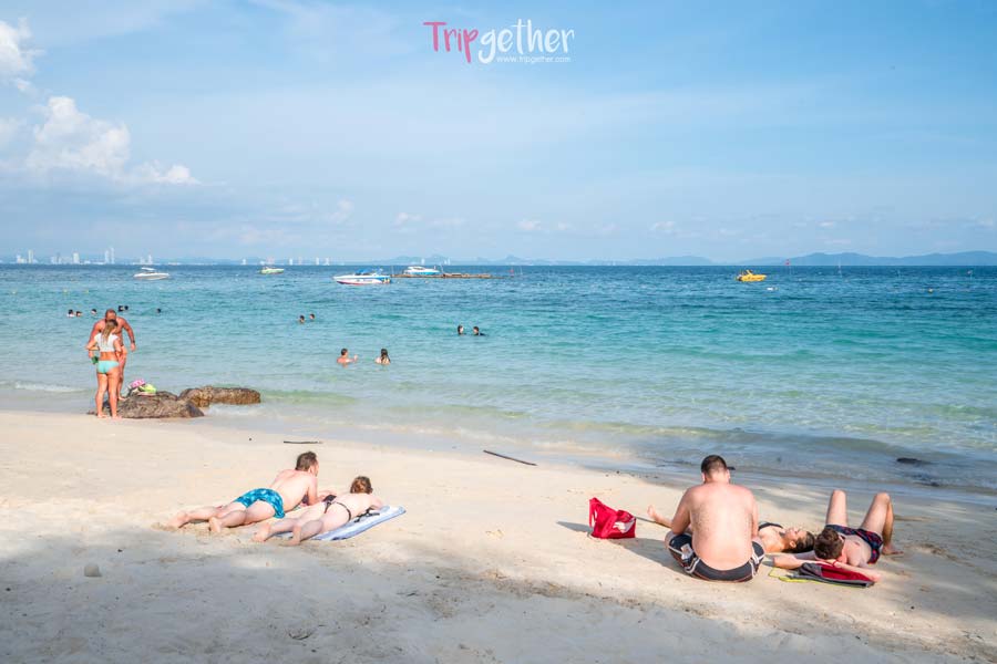 “หาดตายาย” เป็นหาดที่อยู่ปลายเกาะล้านเลย และเป็นหาดขนาดเล็กที่สามารถเดินเล่นจากอีกฝั่งไปอีกฝั่งได้ จุดเด่นคือน้ำทะเลสีใส มีโขดหินอยู่ที่ปลายฝั่ง นักท่องเที่ยวไม่เยอะวุ่นวาย เพราะยังไม่ค่อยเป็นที่นิยมเท่าหาดตาแหวนและหาดแสม ใครที่ชอบความเงียบสงบ บรรยากาศชิลล์เหมาะสำหรับนอนอาบแดด ต้องมาที่หาดตายายเลยนะคะ