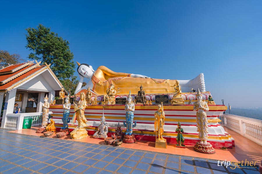ไปขอพรกันต่อที่ วัดพระธาตุดอยคำ วัดดังเชียงใหม่ ขึ้นชื่อที่สุดในเรื่อง การขอโชคลาภ โดยเฉพาะจาก หลวงพ่อทันใจ ที่ผู้คนนิยมมาขอเลขเด็ดกันอย่างล้นหลาม และนอกจากขอโชคลาภแล้ว ยังสามารถขอพรด้านอื่นๆ ได้ด้วยนะ ทั้งการงาน ความรัก และสุขภาพ และเมื่อสมหวังแล้วก็ต้องนำพวงมาลัยดอกมะลิมาถวายหลวงพ่อทันใจเพื่อแก้บน ไฮไลท์อีกอย่างคือวิวพาโนรามาจากจุดชมวิวบนดอย ที่สามารถมองเห็นเมืองเชียงใหม่ได้แบบเต็มตา เรียกได้ว่าได้ทั้งทำบุญและชมวิวสวยๆ ในที่เดียวเลยล่ะ