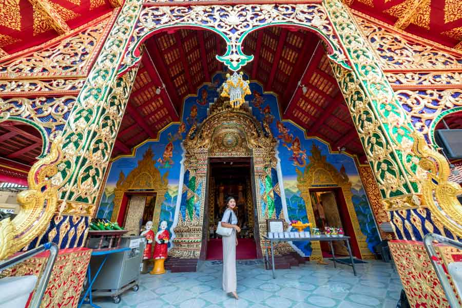 อีกหนึ่ง วัดดังของเชียงใหม่ ย่านถนนวัวลาย ที่ไม่มาไม่ได้เลยก็คือ วัดศรีสุพรรณ จุดเด่นที่ใครมาก็ต้องสะดุดตากับความสวยงามก็คือ อุโบสถเงินหลังแรกของโลก งดงามด้วยศิลปะแบบล้านนาที่วิจิตรตระการตา แถมยังมี ท้าวเวสสุวรรณเงินคู่ และ องค์พระพิฆเนศเงิน ให้สักการะอีกด้วย คนส่วนใหญ่นิยมมาขอพรให้ชีวิตการงานราบรื่น การเงินมั่นคง หรือมีโชคลาภนั่นเอง