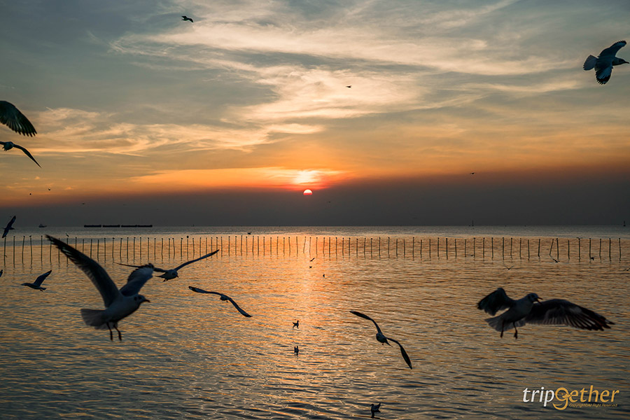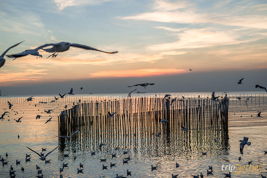 มาต่อกันที่ไฮไลท์ของทริป สถานตากอากาศบางปู ที่เที่ยวบางปู ยอดฮิต ที่ใครๆ ก็ต้องมาเช็คอิน! ที่นี่คือจุดที่ฝูงนกนางนวลนับพันจะบินมาอวดโฉมให้เราถ่ายรูปใกล้ชิดกันแบบไม่ต้องซูมเลย