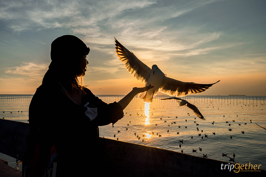 นอกจากนี้ยังมีไฮไลท์สุดพิเศษคือให้อาหารนกนางนวลริมทะเล ฝูงนกจะมาบินวนให้ถ่ายรูปใกล้ๆ